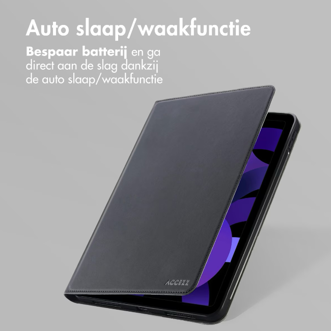 Ontdek de handige auto-wake functie voor jouw tablet! Met deze slimme functie wordt jouw apparaat direct geactiveerd zodra je de flap van de hoes opent, zo maak je efficiënter gebruik van je toestel. Of je nu snel een e-mail wilt beantwoorden, een presentatie moet geven of gebruik wil maken van je favoriete app, dankzij deze slimme functie kan je meteen aan de slag. Wanneer je de flap weer dichtvouwt, gaat je toestel automatisch in slaapstand. Hierdoor bespaar je energie en wordt de levensduur van je batterij verlengd.