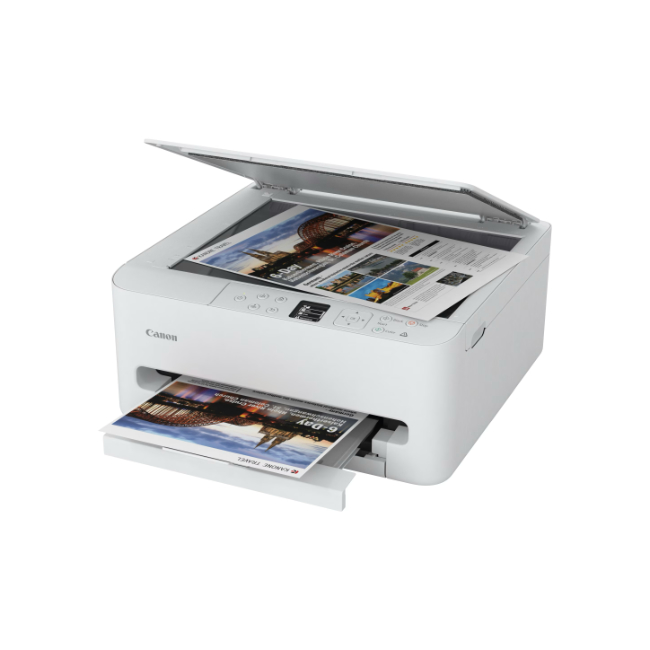 De Canon Pixma TS6550i is een veelzijdige all-in-one inkjetprinter die perfect aansluit bij dagelijks gebruik thuis of in een klein kantoor. Met zijn strakke, witte design past hij moeiteloos in vrijwel iedere werkruimte, terwijl hij functionaliteit en gebruiksgemak combineert in een compact formaat.