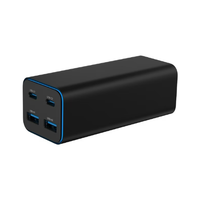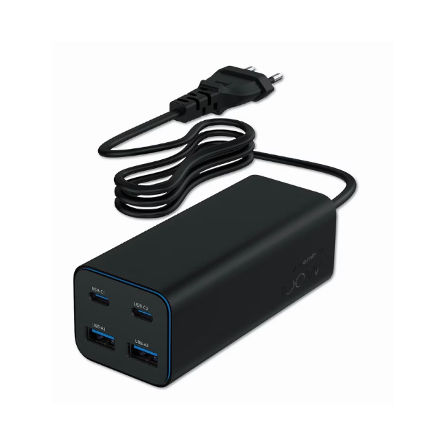 Met twee USB-C-poorten en twee USB-A-poorten kun je eenvoudig smartphones, tablets, laptops, oordopjes en andere USB-apparaten gelijktijdig van stroom voorzien. De USB-C-poorten ondersteunen snellaadtechnologieën zoals Power Delivery, waardoor compatibele apparaten snel en veilig worden opgeladen. Het maximale totale vermogen van 100 watt maakt de lader ook geschikt voor het opladen van veel laptops en andere energie-intensieve apparaten.