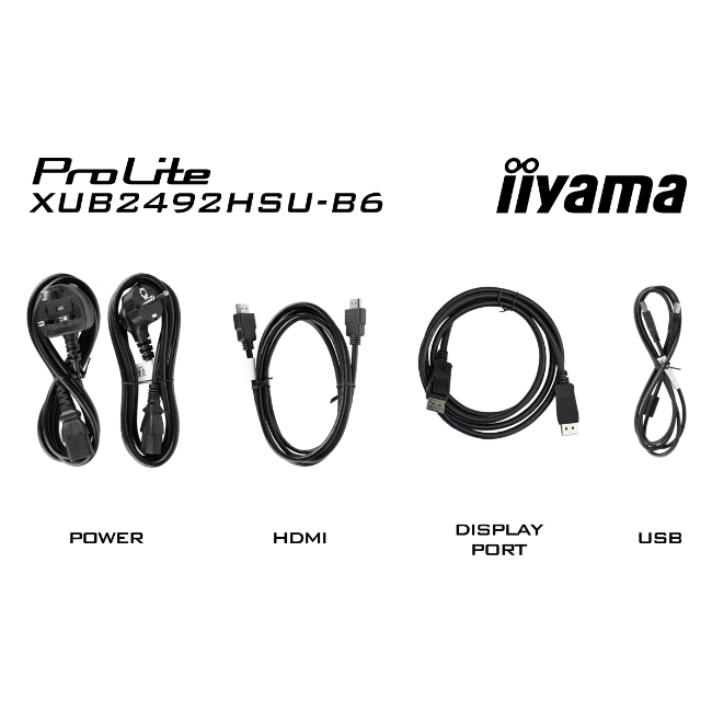 Qua aansluitingen is de ProLite XUB2492HSU-B6 goed uitgerust. De monitor beschikt over HDMI-, DisplayPort- en VGA-ingangen, waardoor hij eenvoudig kan worden gekoppeld aan verschillende apparaten. Bovendien is er een USB-hub met twee poorten aanwezig, handig voor het aansluiten van randapparatuur. De ingebouwde luidsprekers bieden basisgeluid voor videovergaderingen of multimedia, zonder dat externe speakers nodig zijn.