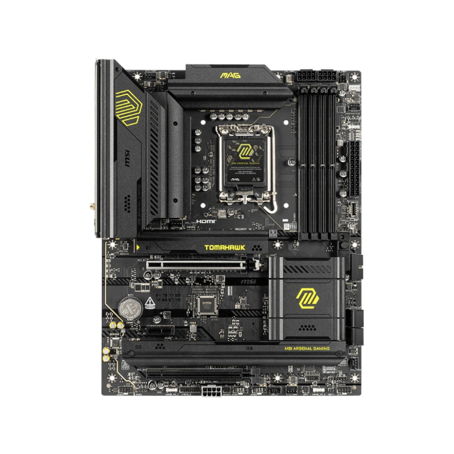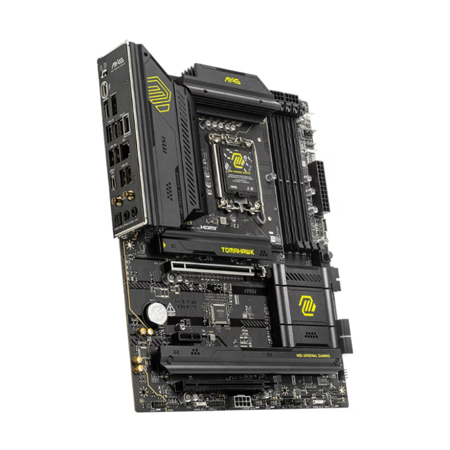 Het bord is voorzien van vier DDR5-geheugensloten die snelheden tot 7800 MHz (OC) ondersteunen, waardoor je het maximale uit je systeem haalt. Daarnaast beschikt de TOMAHAWK over meerdere M.2-slots met PCIe 4.0-ondersteuning en stevige koelblokken om je SSD’s koel en snel te houden, samen met zes SATA-poorten voor extra opslagopties.