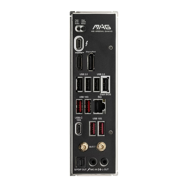 Op het gebied van connectiviteit levert MSI een volledig pakket: WiFi 7 en 2.5G LAN zorgen voor bliksemsnelle netwerkprestaties, terwijl Bluetooth 5.4 en talrijke USB-poorten – waaronder USB-C – zorgen voor moderne aansluitmogelijkheden.