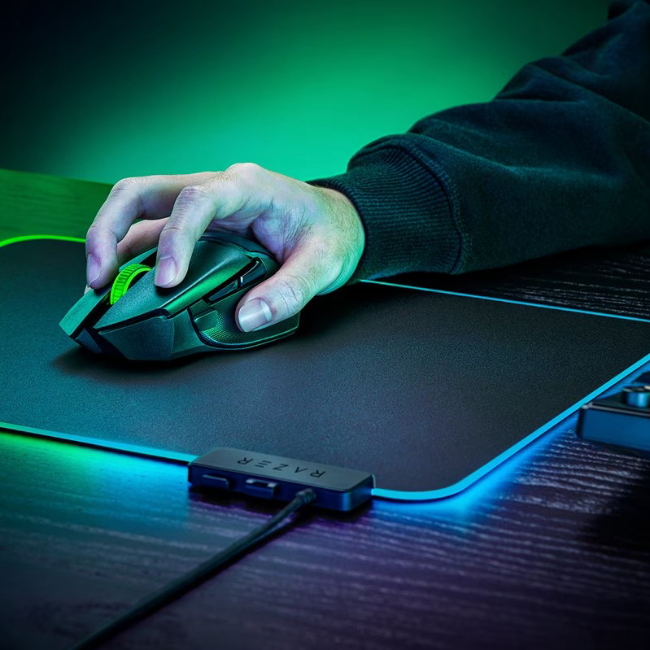 De Basilisk V3 X HyperSpeed ondersteunt zowel Razer HyperSpeed draadloos voor ultra-lage latentie als Bluetooth voor een langere batterijduur. Met een indrukwekkende batterijcapaciteit van honderden uren kun je wekenlang draadloos werken of gamen zonder op te laden.