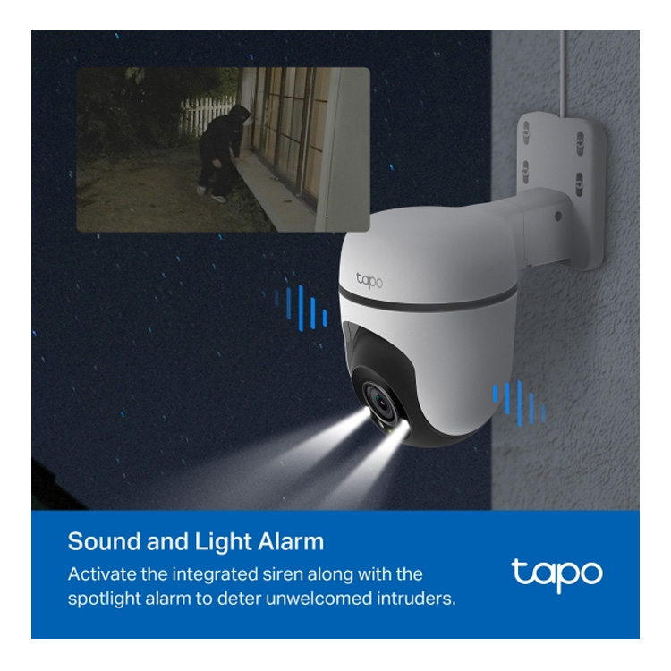 • Geluids- en lichtalarm: activeer de geïntegreerde sirene en de spotlamp om ongewenste bezoekers weg te jagen.