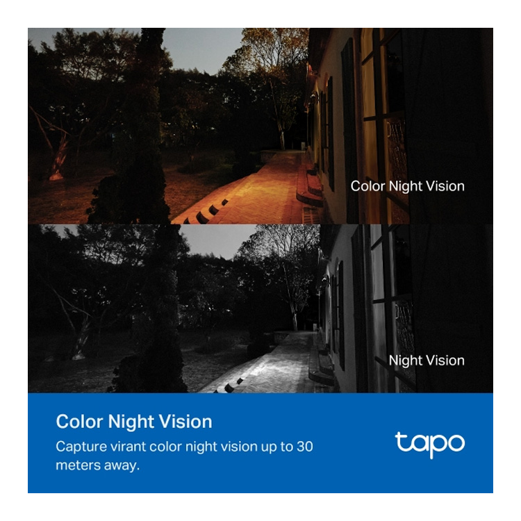 Nachtzicht met levendige kleuren tot 30 meter afstand, voor meer details bij slechte lichtomstandigheden. Met de slimme modus wordt de liveweergave omgezet in nachtzicht in kleur nadat een persoon is gedetecteerd.